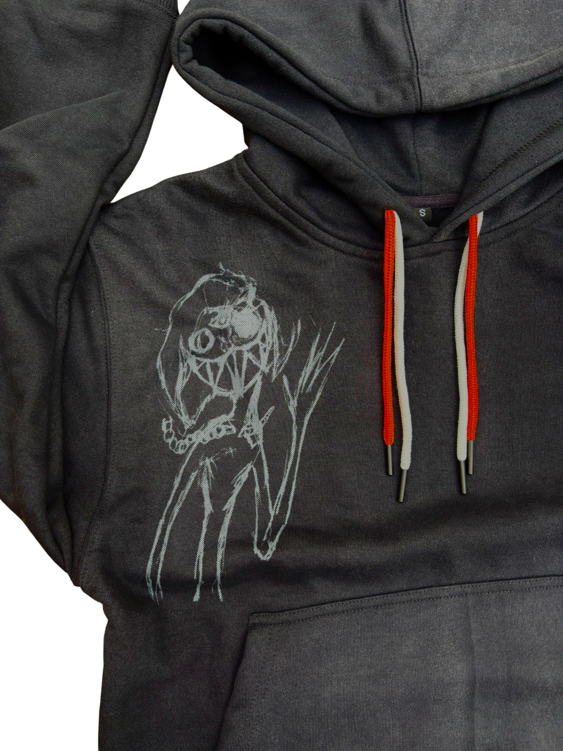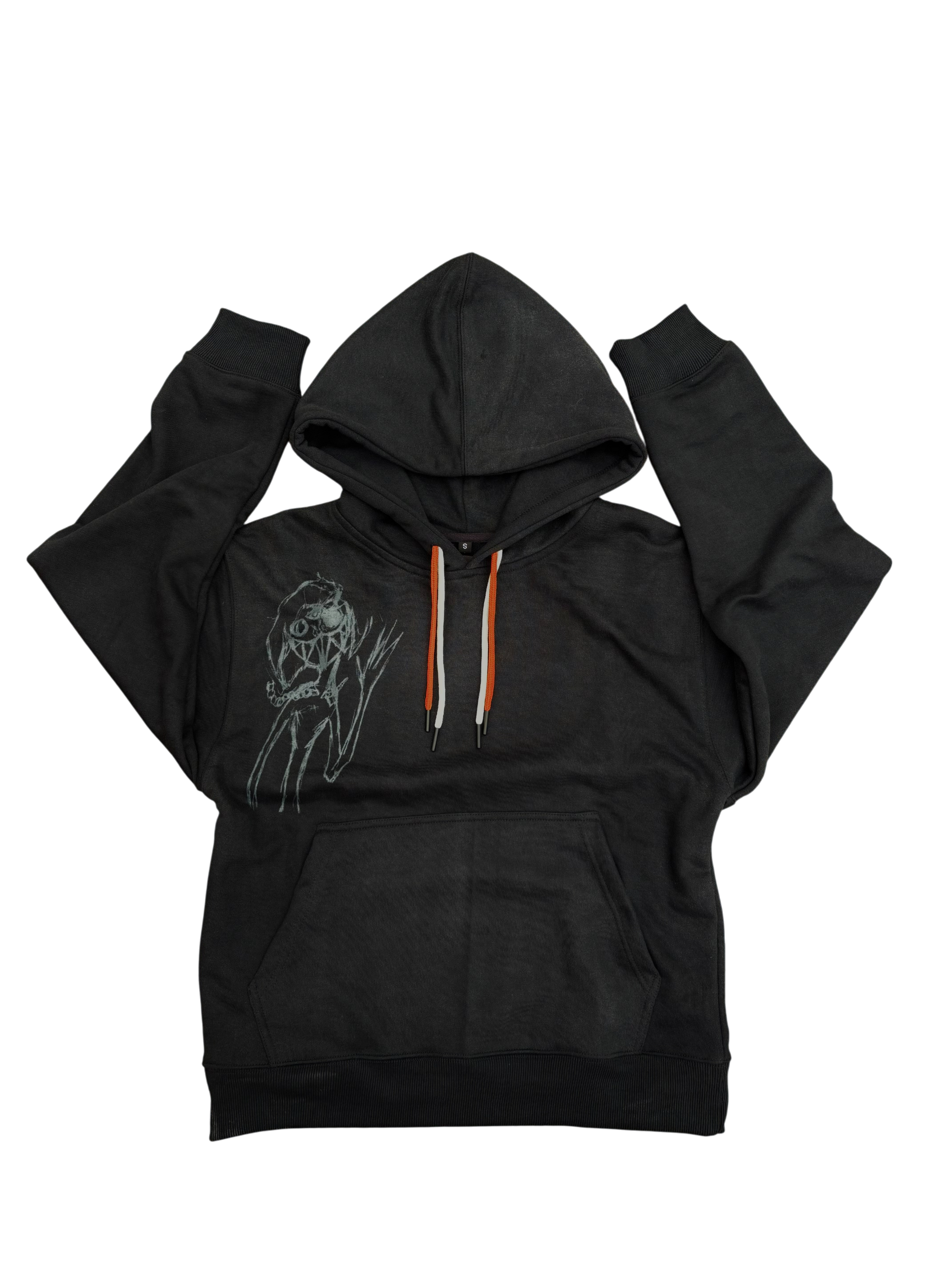 Being a trouble maker in school inspired me to create this garment. Sitting at a rugged desk I always made little sketches on the desk that you now see on this hoodie. With the nice mix of color and design it has been one of my favorite hoodies I have made...so far
